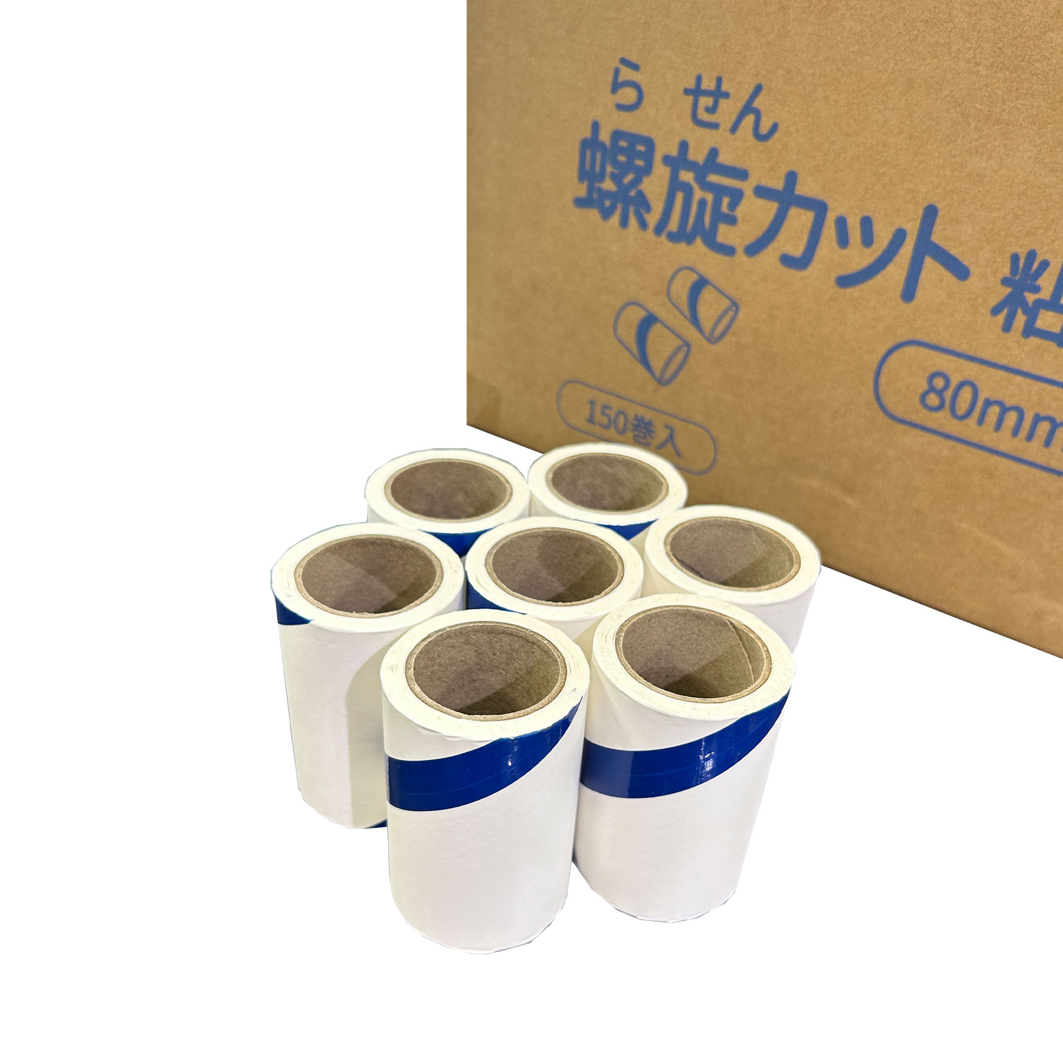 ●螺旋カット粘着ローラースペアテープです。●幅80mm×90周/巻、150巻/ケース