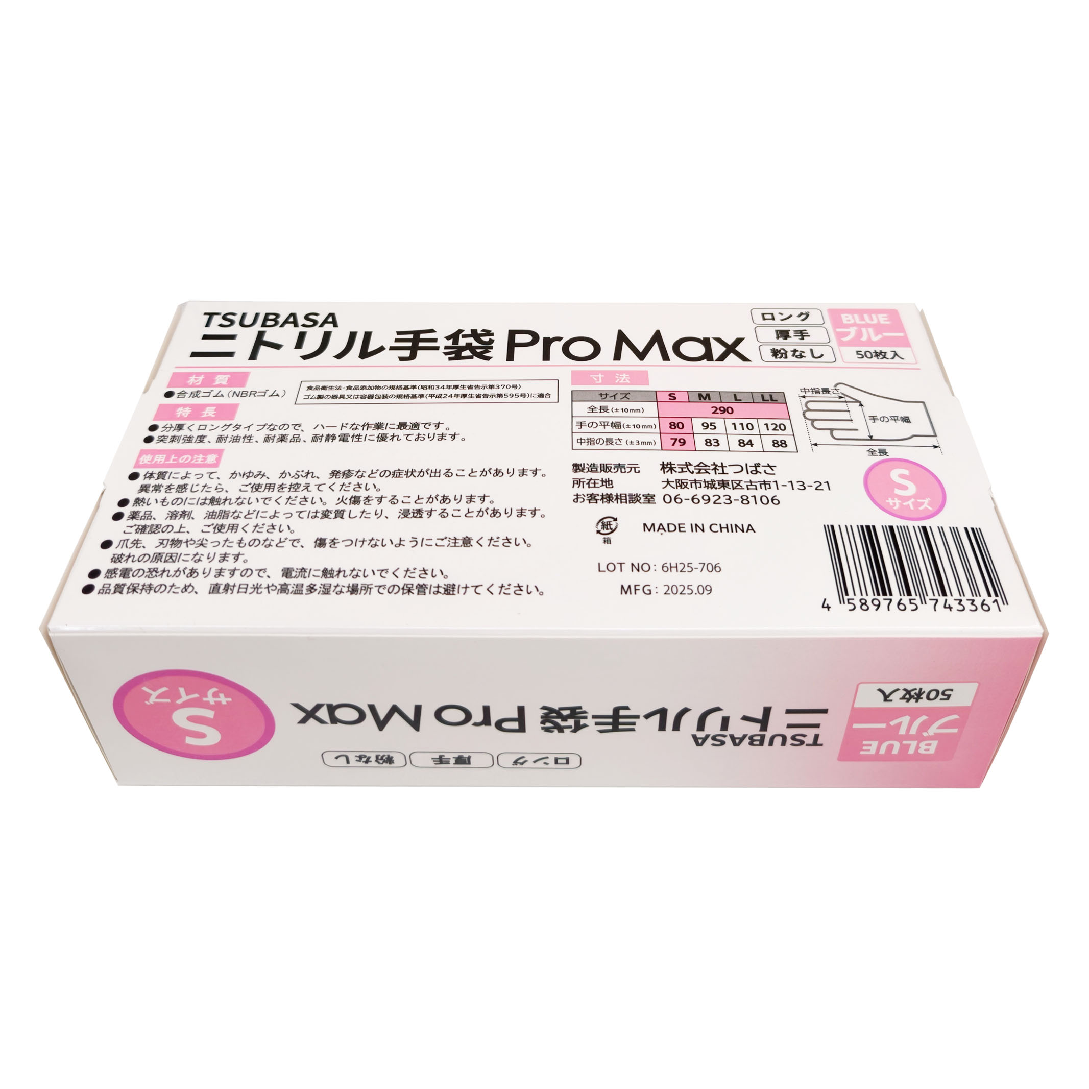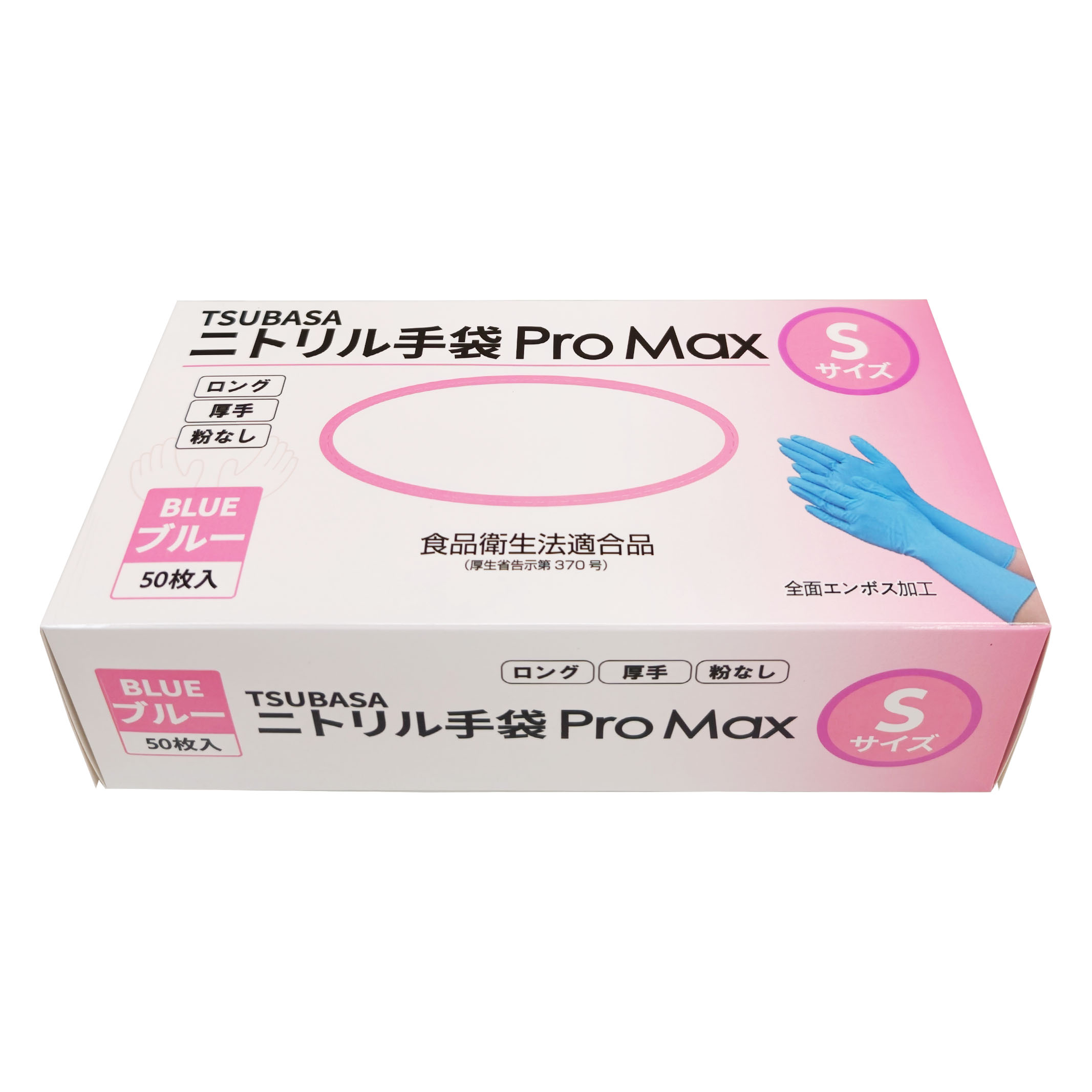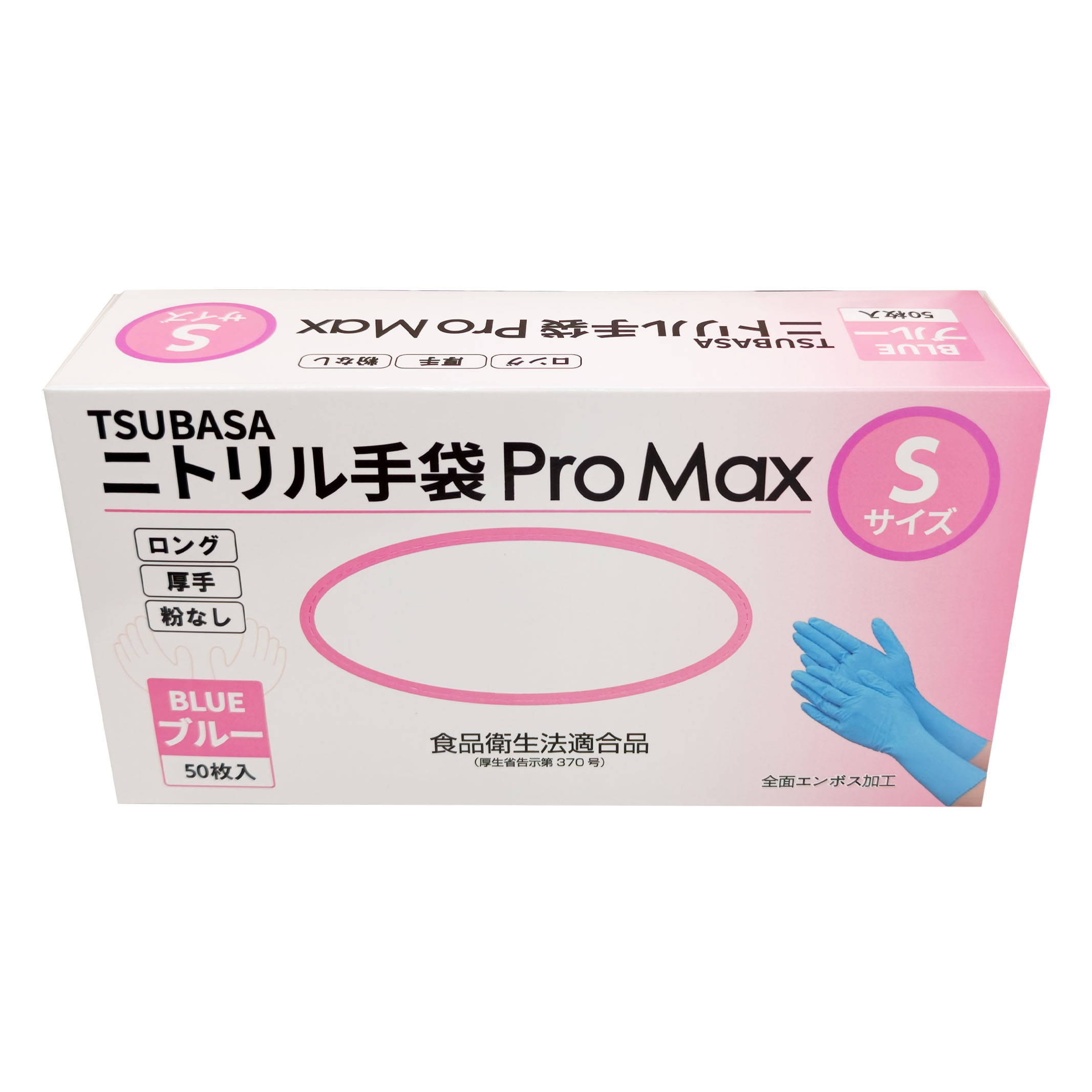 TSUBASA ニトリル手袋 ProMax ロングタイプ 厚手 使い捨て手袋 粉なし(パウダーフリー) ブルー Sサイズ 50枚入