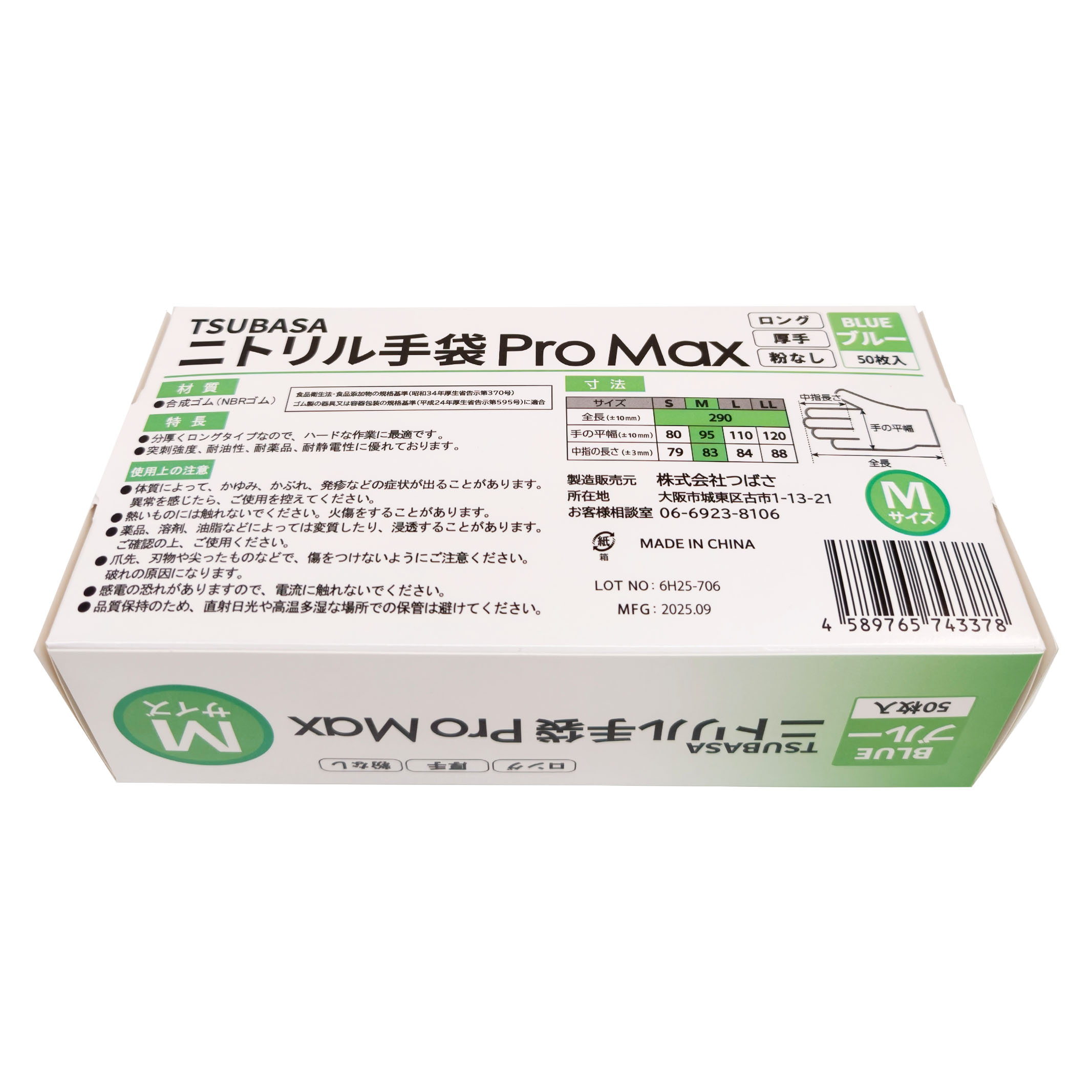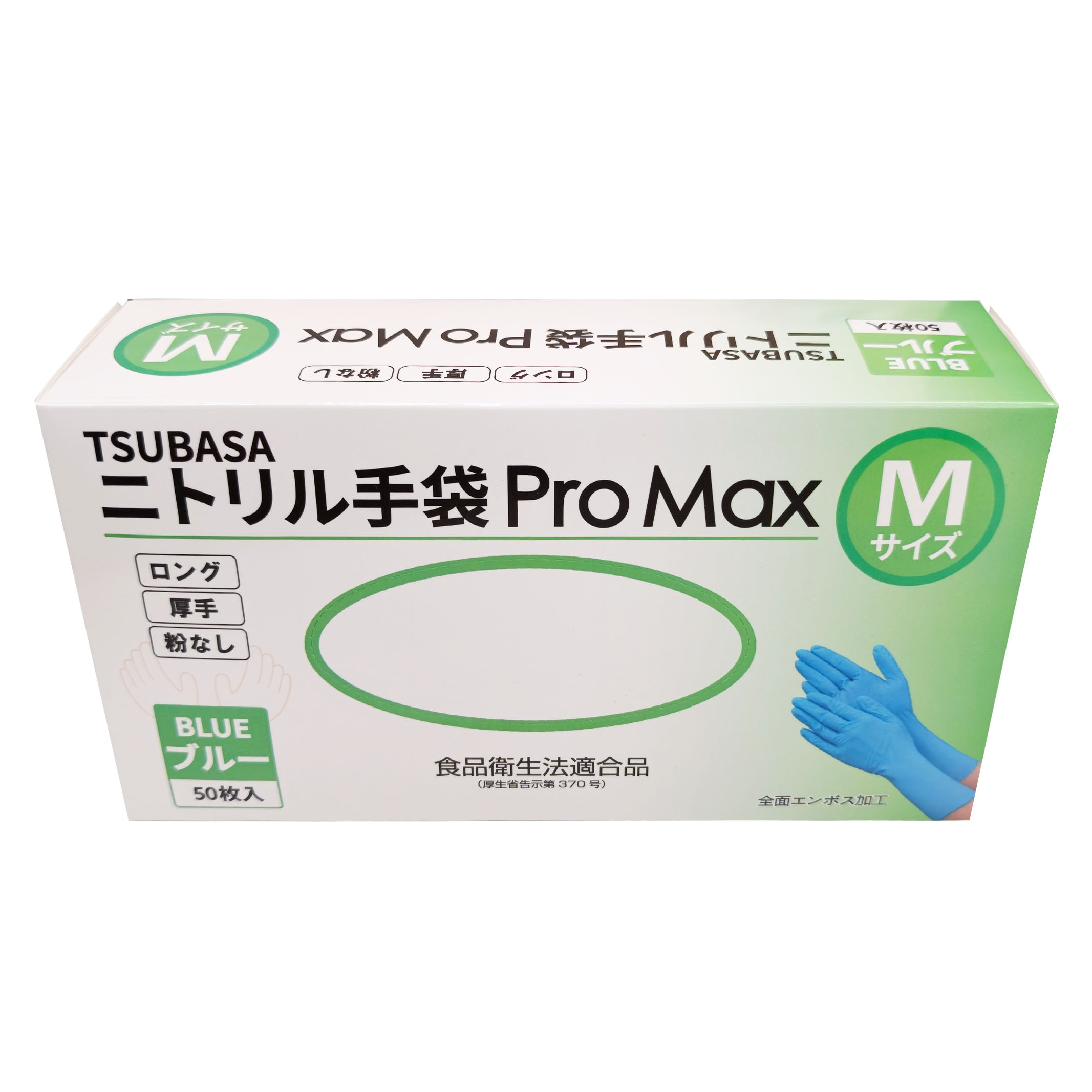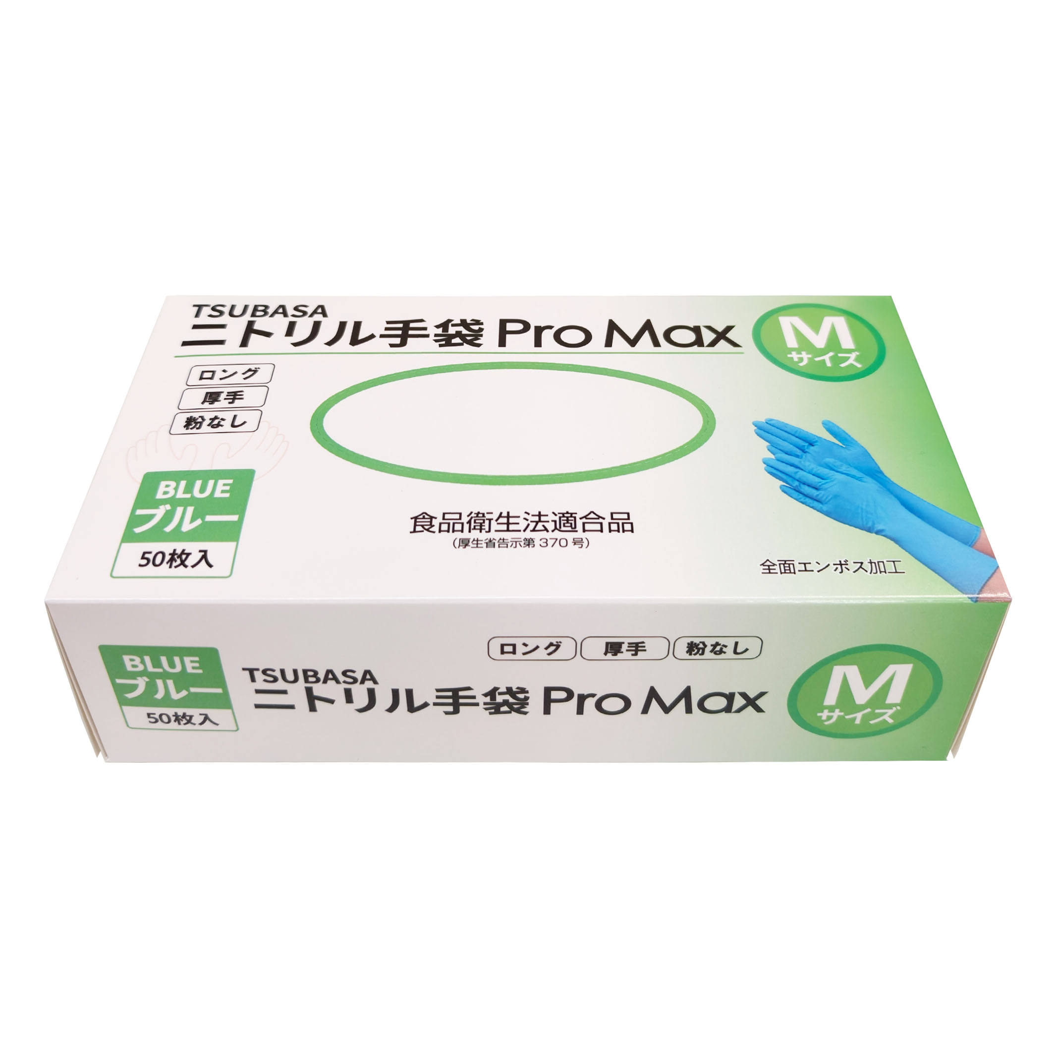 TSUBASA ニトリル手袋 ProMax ロングタイプ 厚手 使い捨て手袋 粉なし(パウダーフリー) ブルー Mサイズ 50枚入